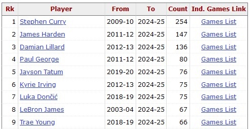 吹楊生涯67次至少30分+5三分 與詹姆斯并列歷史第8&庫(kù)里斷檔第一