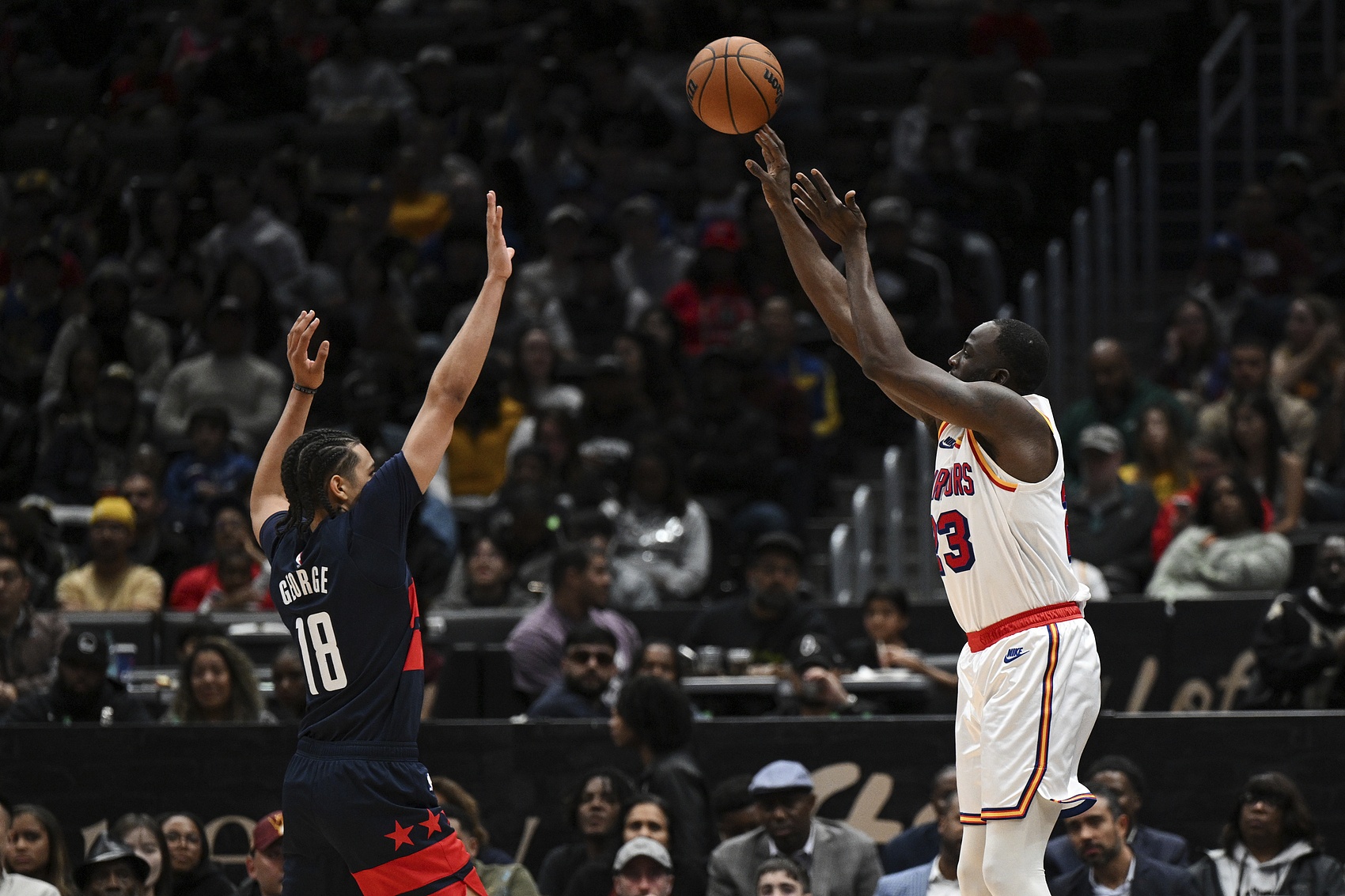 “這就是為什么這種保障很重要。因?yàn)楫?dāng)他投籃命中時(shí),這對金州勇士隊(duì)有著深遠(yuǎn)的積極影響。我不是說因?yàn)樗凰闶巧涫?,你就要改變策略。但要是你不防守他,放他空位,而他又命中那些投籃,那一切就都變了。因?yàn)槟菢右粊?,他們就有可能在西部擊敗某些對手?”