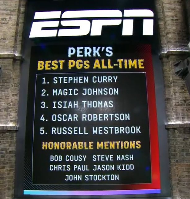 帕金斯評(píng)歷史前5控衛(wèi):庫(kù)里&魔術(shù)師&托馬斯&大O&威少