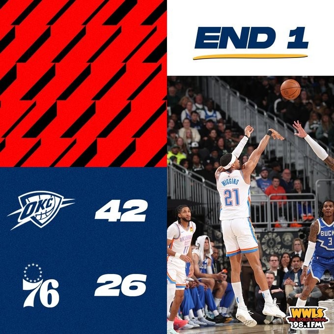 輪休主力仍火力十足!雷霆第一節(jié)轟下42分 創(chuàng)賽季首節(jié)新高