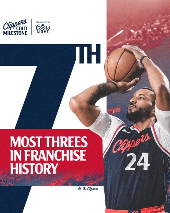 里程碑!鮑威爾超越路威 獨居快船隊史三分榜第7位