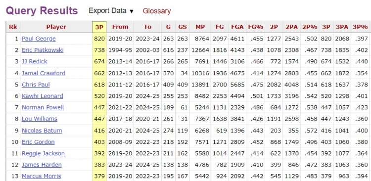 根據(jù)數(shù)據(jù)統(tǒng)計,加上已經(jīng)投進的1個三分,鮑威爾快船生涯三分?jǐn)?shù)來到448記,他超越路威,獨居隊史三分榜第7位。