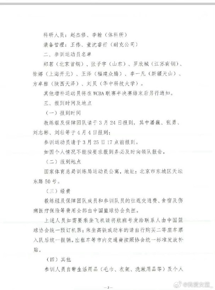集訓(xùn)運(yùn)動員名單如下:鄭茗(北京首鋼)、張子宇(山東)、羅欣棫(江蘇南鋼)、徐娜(上海開元)、王澤(福建眾騰)、李一凡(新疆天山)、方卓雅(陜西天澤)、劉貝(華中科技大學(xué))。