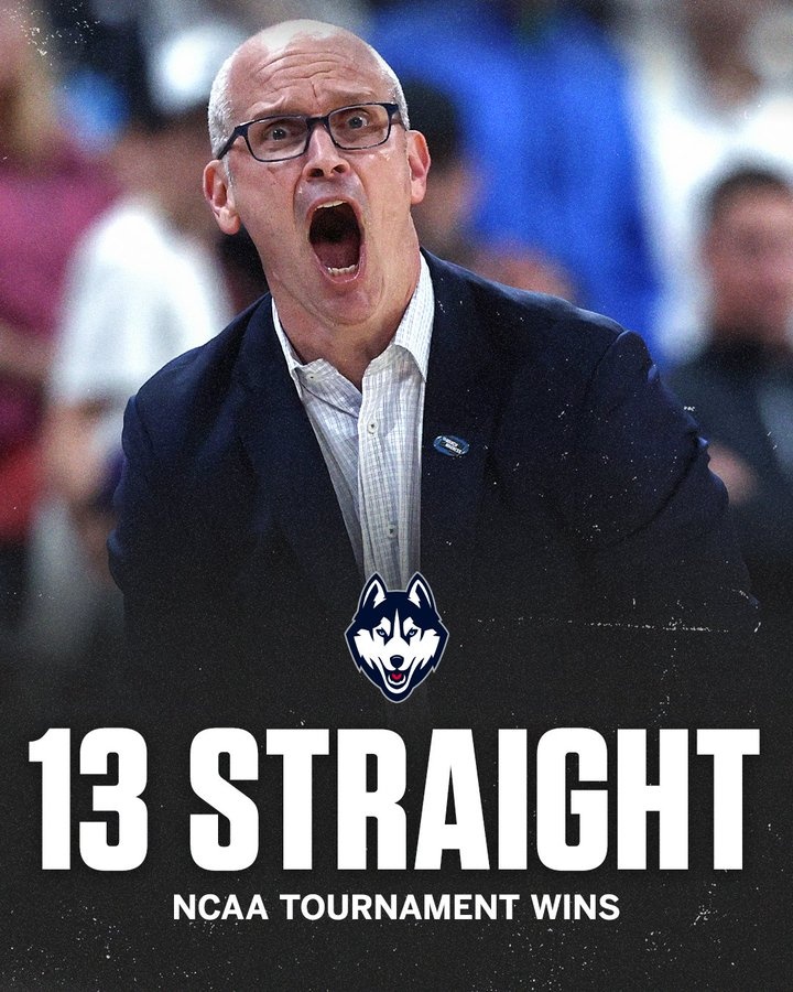 至此,康涅狄格大學(xué)主帥丹-赫爾利已經(jīng)率球隊(duì)在瘋狂三月的比賽中取得13連勝,追平了杜克大學(xué)在1991-93年所創(chuàng)的連勝紀(jì)錄,同時(shí)也是康涅狄格校史第二長(zhǎng)的瘋?cè)B勝紀(jì)錄。