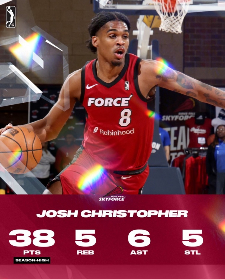 此役,前火箭球員克里斯托弗(現(xiàn)效力于蘇福爾斯天力、熱火下屬G聯(lián)盟球隊(duì))出戰(zhàn)39分18秒,投籃22中13,三分9中7,罰球2中2,爆砍38分5籃板6助攻5搶斷2蓋帽。