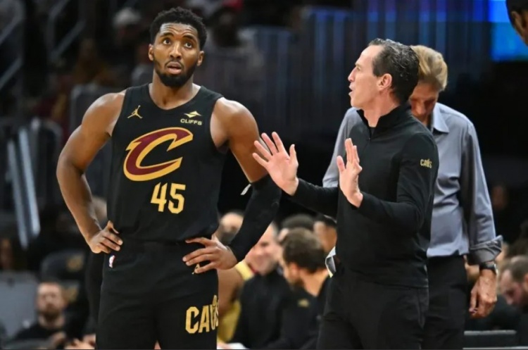 這回4連敗,追根溯源也是米切爾的復(fù)出。他此前在對(duì)陣灰熊時(shí)缺席過(guò)一場(chǎng),然后復(fù)出,但是復(fù)出后4場(chǎng)不在狀態(tài),對(duì)陣太陽(yáng)一場(chǎng)更是荒腔走板到18投僅有2中,僅得7分。就是復(fù)出的頭2場(chǎng),米切爾也是狀態(tài)不佳,分別只有28投9中,和18投5中。盡管米切爾賽后攬責(zé):“輸球都怪我,當(dāng)領(lǐng)袖球員表現(xiàn)不佳時(shí),失利也就在所難免了?!钡浊袪柸绱?,騎士奈若何?