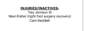 值得注意的是,除了受傷的克萊伯,雷迪什和雙向合同球員杰米森沒有進(jìn)入激活名單。