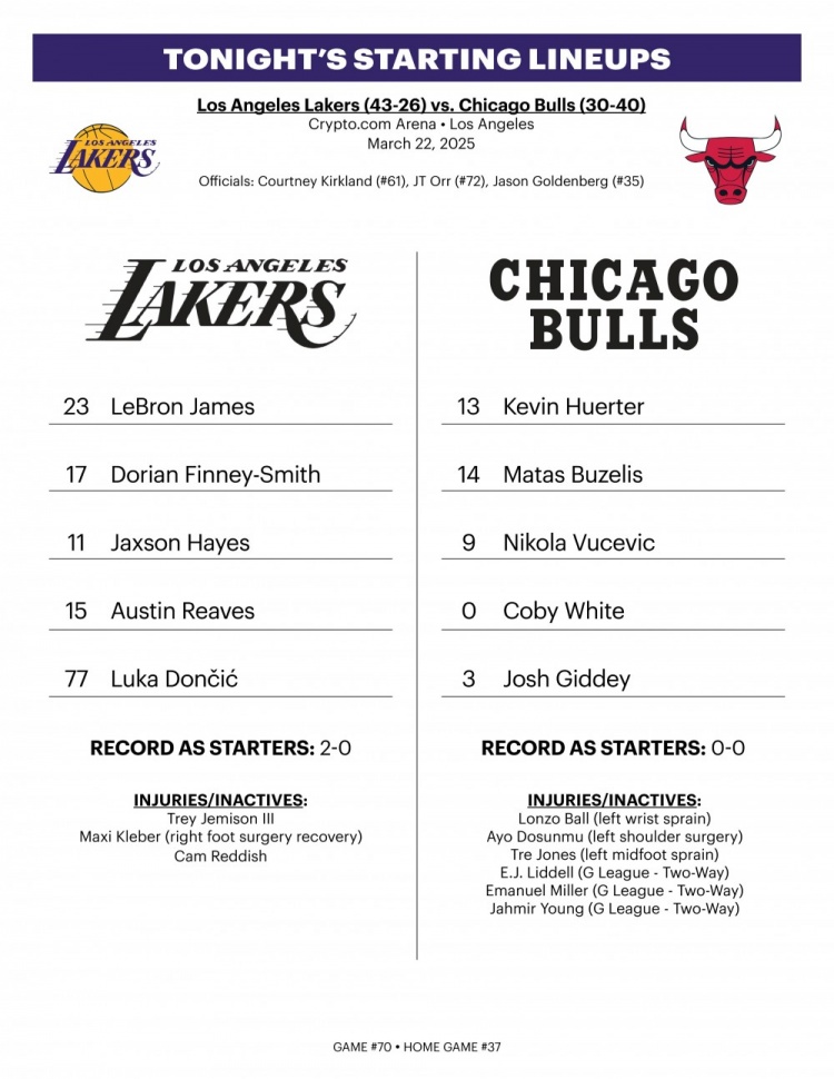 3月23日訊 上午10點(diǎn)半,湖人主場(chǎng)迎戰(zhàn)公牛。