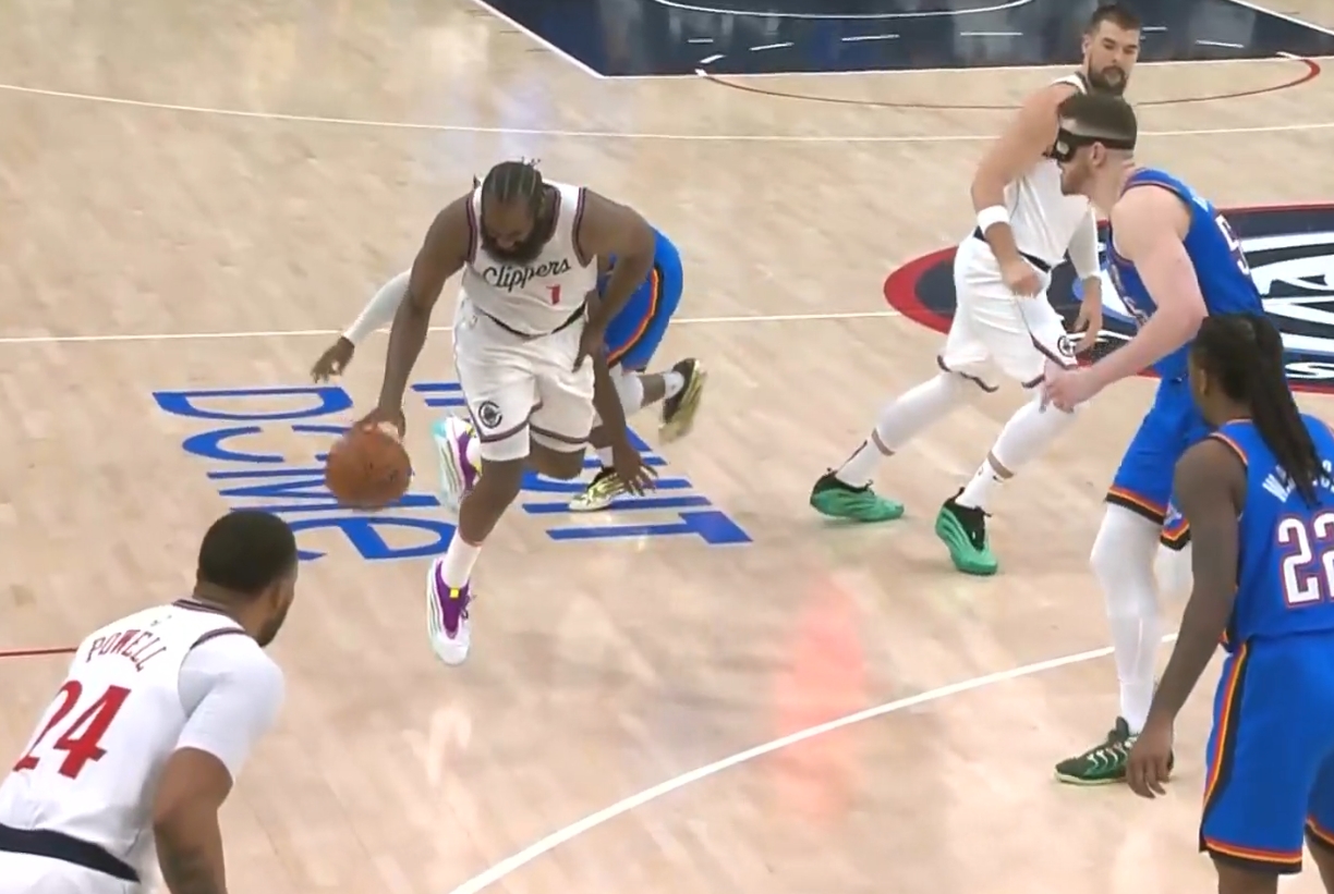 被多特貼身頂翻!哈登捂著自己的大腿痛苦倒地!好在無礙繼續(xù)比賽