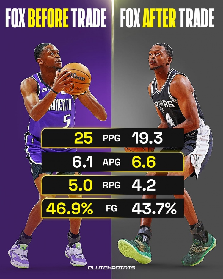 本賽季,??怂乖趪?guó)王場(chǎng)均25分5籃板6.1助攻,投籃命中率46.9%;在馬刺場(chǎng)均19.3分4.2籃板6.6助攻,投籃命中率43.7%。