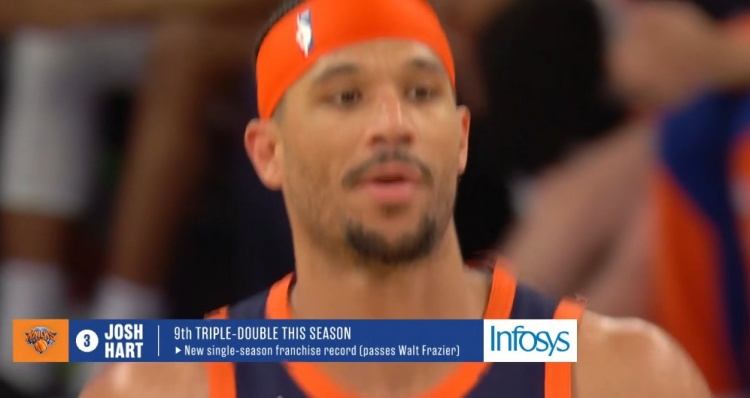 哈特獲本賽季個(gè)人第9次三雙 超越弗雷澤&創(chuàng)尼克斯隊(duì)史新紀(jì)錄