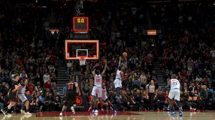 奇才隊垂頭喪氣地站在一旁,希望裁判的審查能取消這個進球。當裁判做出裁決——謝德在時鐘指向0:00時仍有兩個手指觸球——奇才隊高興地跳了起來,猛龍隊從興奮變?yōu)檎痼@,噪音從喧鬧變?yōu)槔Щ蟮牡驼Z。