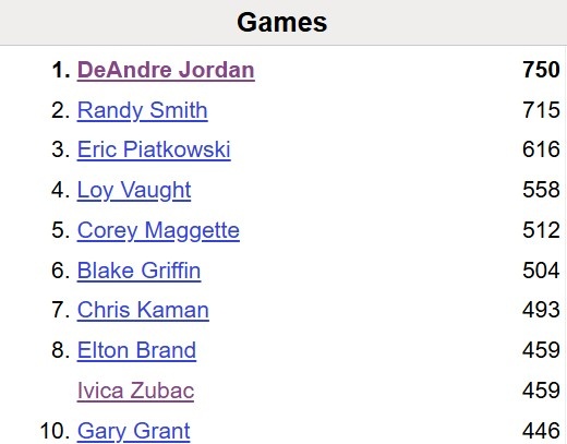 祖巴茨為快船出戰(zhàn)460場比賽 超越埃爾德-布蘭德&上升至隊史第八位