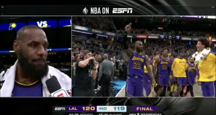3月27日訊 今日,湖人120-119客場險勝步行者,結(jié)束三連敗。湖人前鋒詹姆斯完成補籃壓哨絕殺。