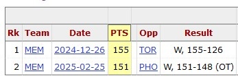 據(jù)統(tǒng)計,162分是本賽季球隊單場得分的新高,此前紀(jì)錄是灰熊的155分。2024年12月27日,灰熊155-126大勝猛龍。