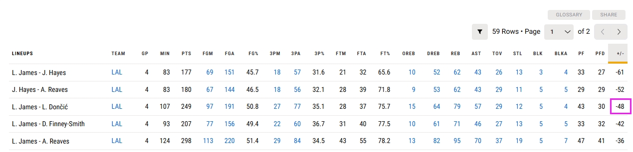A史密斯亮出數(shù)據(jù):“詹姆斯復(fù)出之后,湖人1勝3負(fù),盧卡和詹姆斯同時(shí)在場(chǎng)的正負(fù)值分別是-13、-14、-12、-9,兩人在場(chǎng)時(shí)一共輸了48分?!?/p>