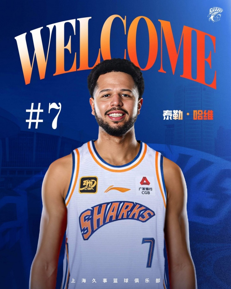 CBA官方:上海新外援泰勒-哈維正式完成注冊