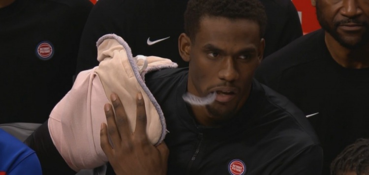比賽進(jìn)行到末節(jié),杜倫在一次進(jìn)攻的時候手被拉了一下,肩膀疑似出現(xiàn)不適,坐在板凳席上裹著厚厚的繃帶。