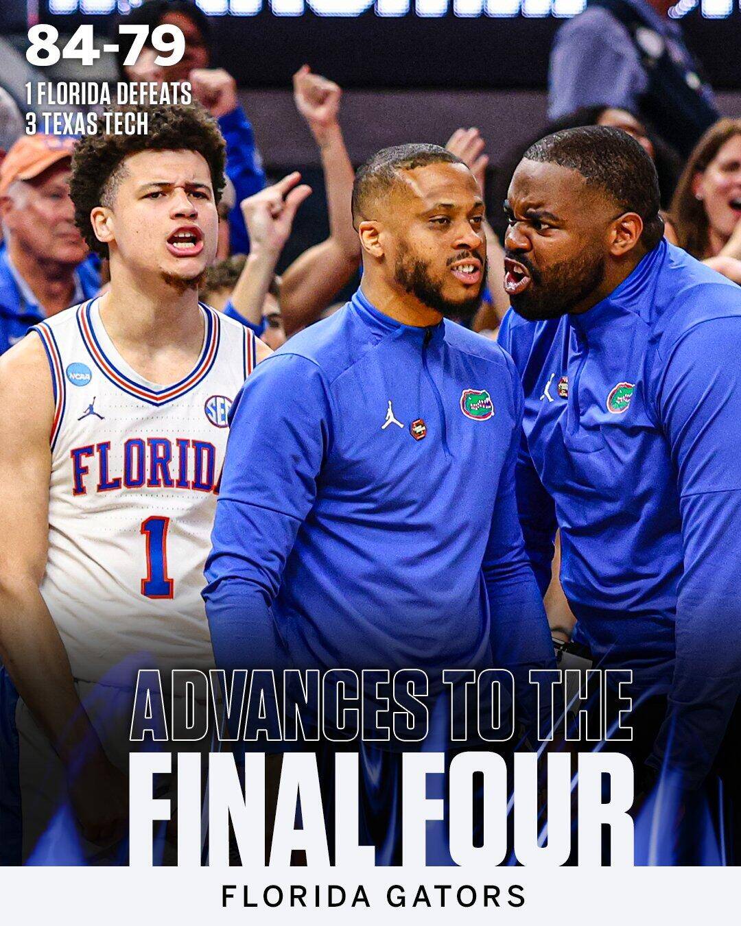 03月30日訊 NCAA“瘋?cè)比厘\標(biāo)賽八進(jìn)四,西區(qū)1號(hào)種子佛羅里達(dá)大學(xué)84-79擊敗得州理工大學(xué)。