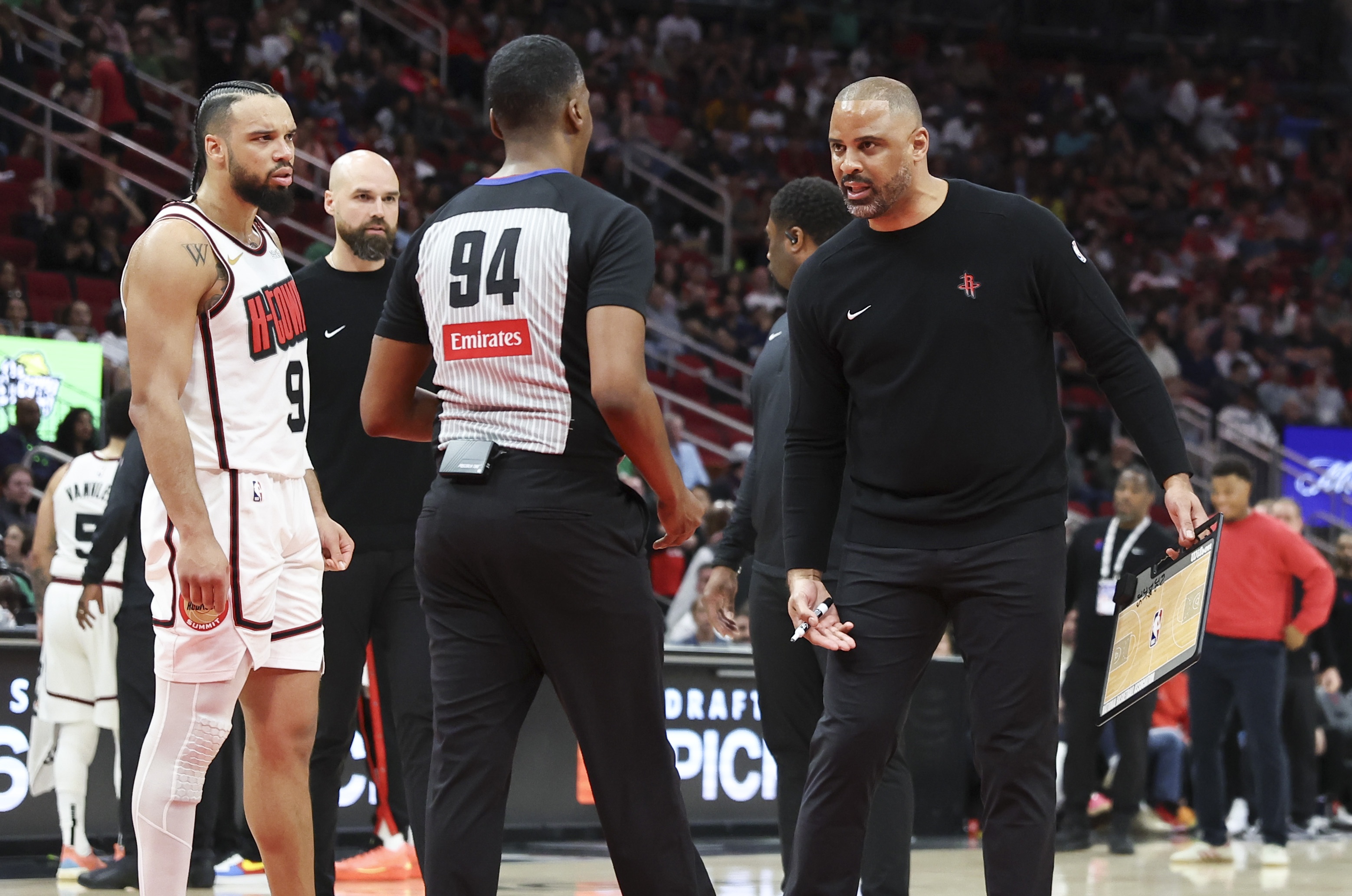 3月31日訊 火箭主帥烏度卡在今日148-109擊敗太陽的賽后接受媒體采訪,談到了本隊(duì)隊(duì)員狄龍被驅(qū)逐。
