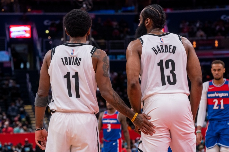米切爾:那是很高的贊譽(yù)。在歷史上嗎?這很難評(píng)判。我不會(huì)把任何人排在我們前面,因?yàn)槲也荒?。但是我認(rèn)為曾有歐文和哈登的組合存在過。曾有歐文和東契奇的組合存在過。