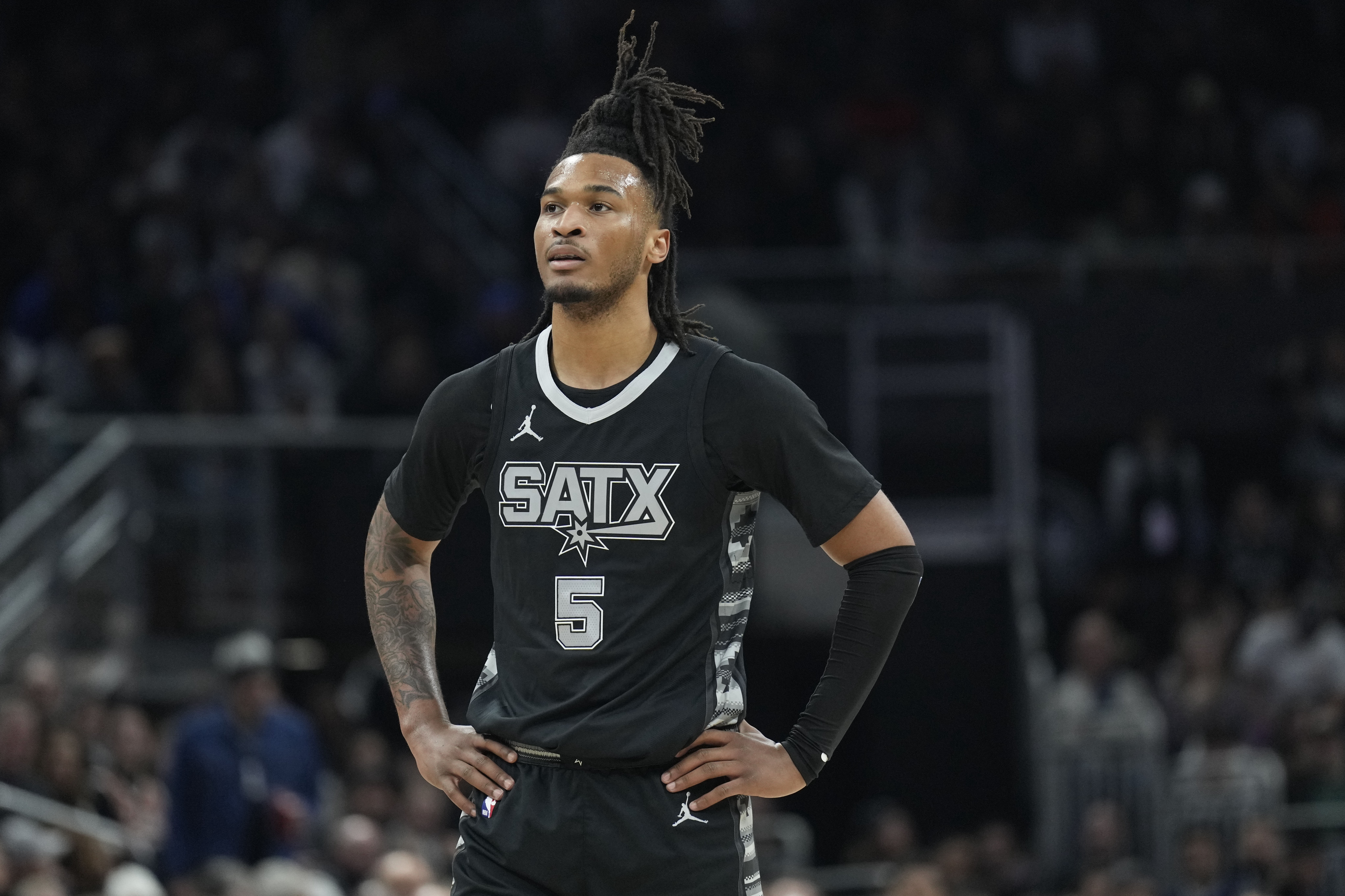 本場(chǎng)比賽,馬刺新秀卡斯?fàn)柋憩F(xiàn)出色,替補(bǔ)出戰(zhàn)拿到全隊(duì)最高分,但末節(jié)因?yàn)榱柑崆半x場(chǎng),球隊(duì)也是遭遇失利,在26分鐘的時(shí)間里,投籃17中10,三分球5中2,罰球3中3,拿到25分2籃板3助攻的數(shù)據(jù)。
