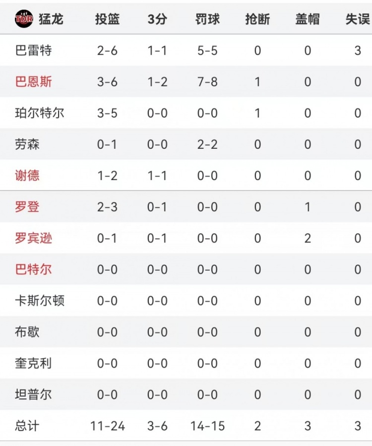 猛龍首節(jié)堅(jiān)決沖擊內(nèi)線頻頻獲得罰球,并且罰球命中率非常不錯(cuò),全隊(duì)15次罰球機(jī)會(huì),罰進(jìn)14球。其中巴恩斯8罰7中,巴雷特5罰5中。