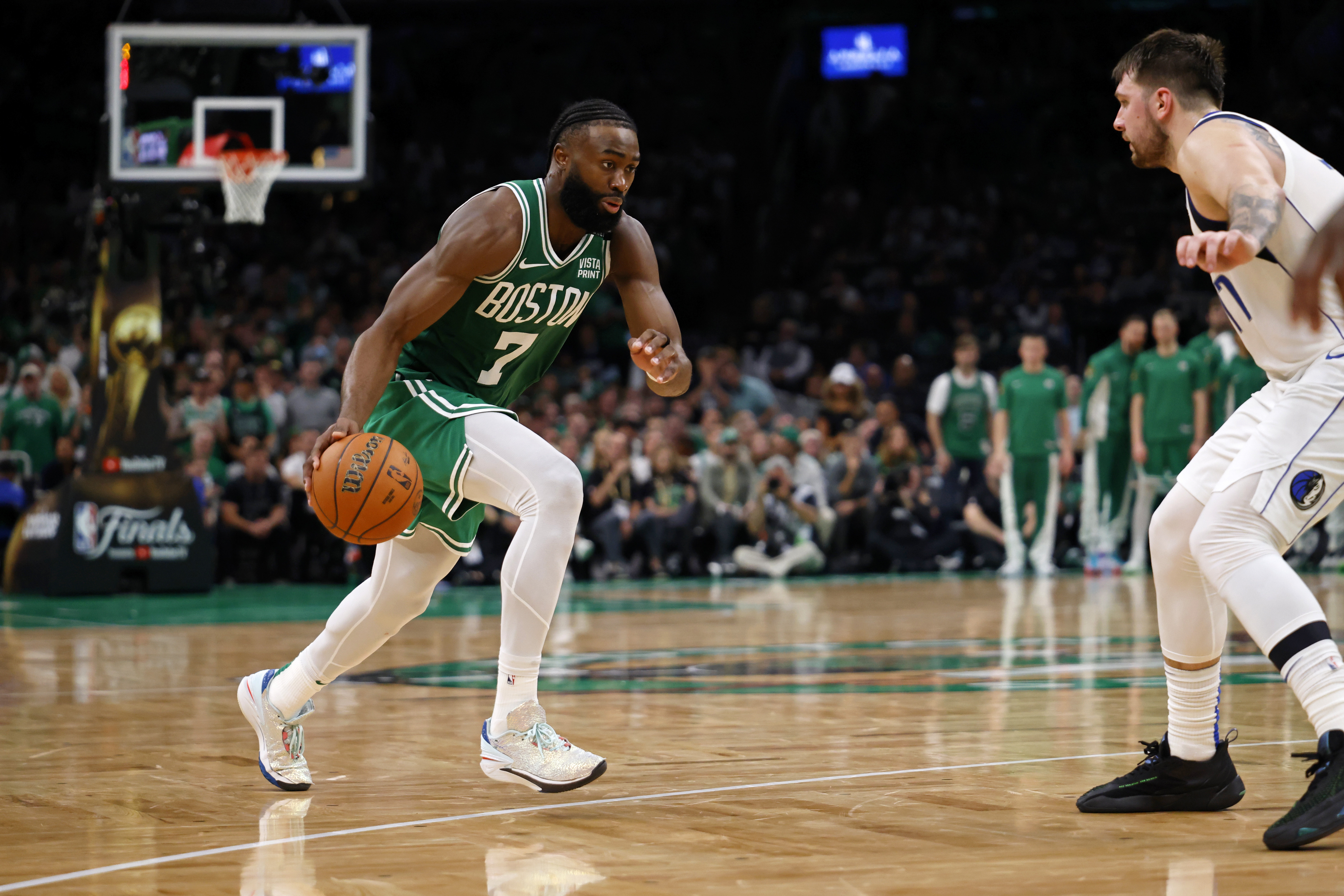 有一段時(shí)間,東契奇的表現(xiàn)仿佛重現(xiàn)了去年總決賽的場(chǎng)景(對(duì)凱爾特人隊(duì)而言或許并不遙遠(yuǎn))。凱爾特人隊(duì)早早對(duì)東契奇實(shí)施包夾,而布朗則在防守端成為核心——不斷搶斷發(fā)起快攻暴扣,并在進(jìn)攻端消耗東契奇的體力。