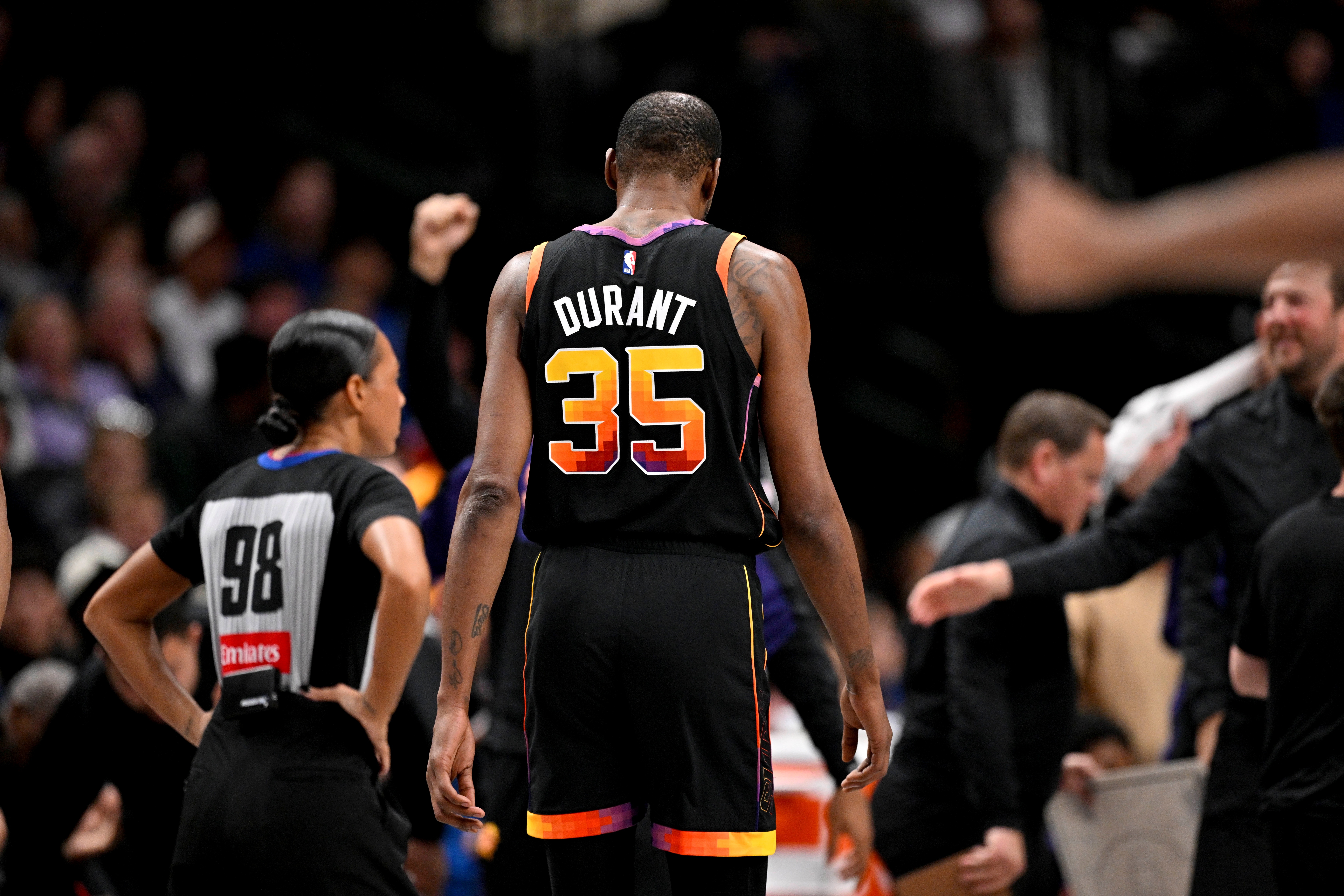 此役,太陽(yáng)球星杜蘭特扛起球隊(duì)輸出重?fù)?dān),三分線外下起大雨,這也過多消耗了KD的體力,在比賽最后時(shí)刻他絕殺三分不中,球隊(duì)客場(chǎng)飲恨。