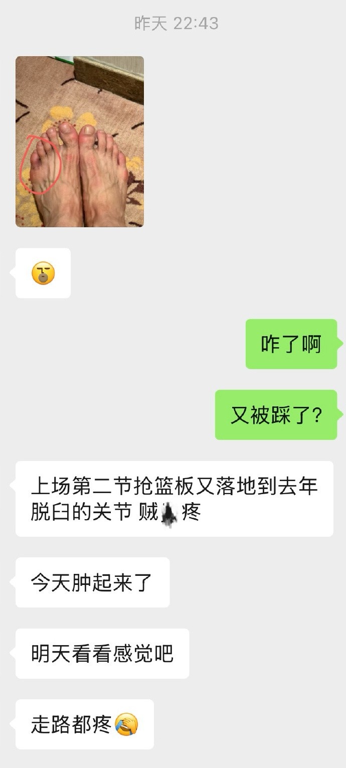 李弘權(quán)上一場第二節(jié)搶籃板的時候又傷到了去年脫臼的腳趾關(guān)節(jié),賽前吃了兩粒止疼藥上去打的。