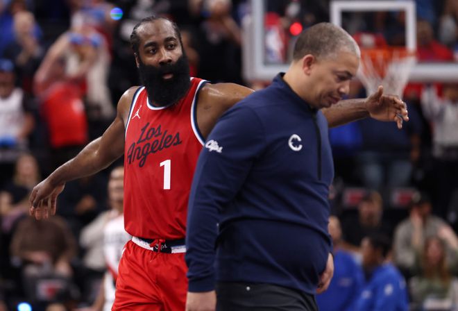 就是倫納德。首先,我們都知道泰倫盧從騎士時(shí)期起,就經(jīng)常搞“自爆戰(zhàn)術(shù)”,早早經(jīng)歷慘敗和連敗,讓球員自己發(fā)現(xiàn)問題,配合解決問題。最典型的例子就是哈登剛加盟快船時(shí)一波5連敗,把威少試出來了。理想情況下,快船的首發(fā)一定是:哈登+比爾+小卡+科林斯+祖巴茨,有了科林斯,還讓小卡去打四號位干什么?和爵士慘敗就是如此,爵士鋒線+內(nèi)線三人組,馬卡寧2米16,菲利波夫斯基2米11,凱斯勒2米18,整體比快船高一頭,指望小卡去對位馬卡寧,只有挨欺負(fù)的份。