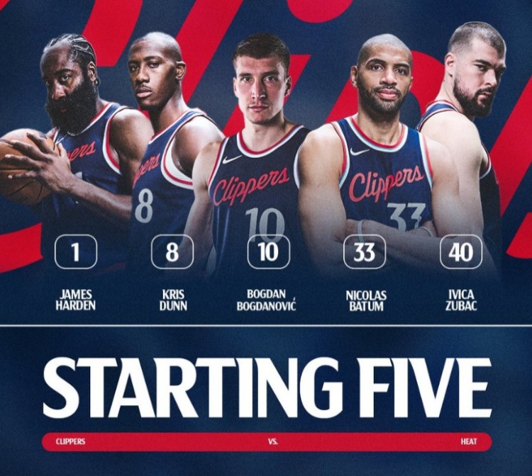 小卡輪休!快船首發(fā):哈登、鄧恩、博格丹、巴圖姆、祖巴茨