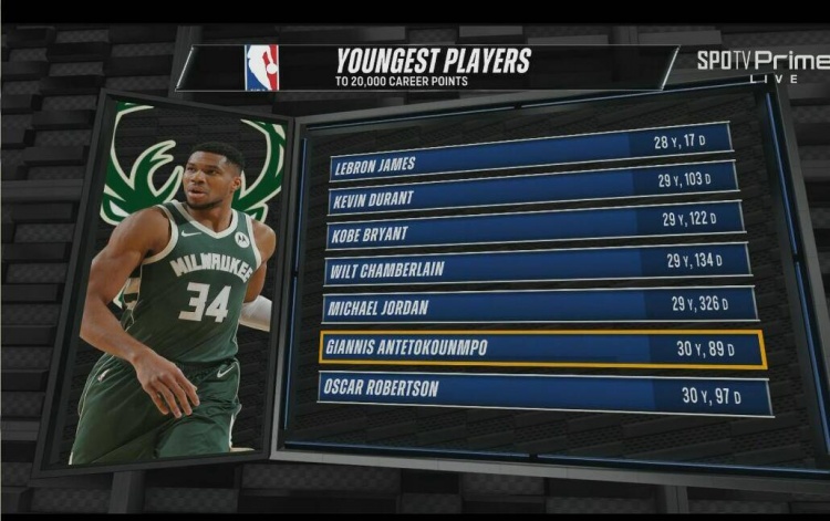 字母哥30歲89天解鎖2萬(wàn)分歷史第6年輕 僅次于詹杜科&大帥&喬丹