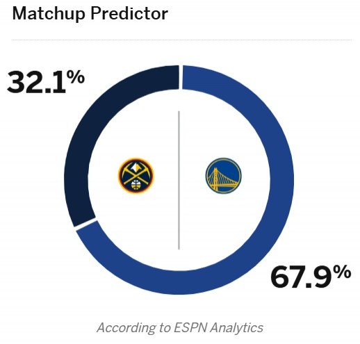 掘金近5戰(zhàn)全勝勇士!ESPN預(yù)測(cè)明天勝率:勇士67.9% 掘金32.1%