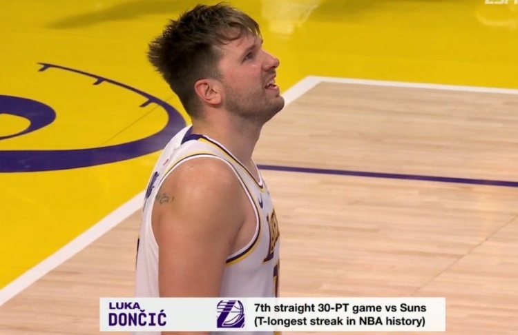 據(jù)ESPN統(tǒng)計,這是東契奇連續(xù)7場在面對太陽的比賽中打出得分30+,追平NBA歷史最長場次紀錄。