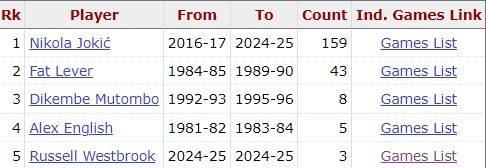 本場是威少加盟掘金以來第4場三雙,這已經(jīng)能排到掘金隊史三雙榜前5。