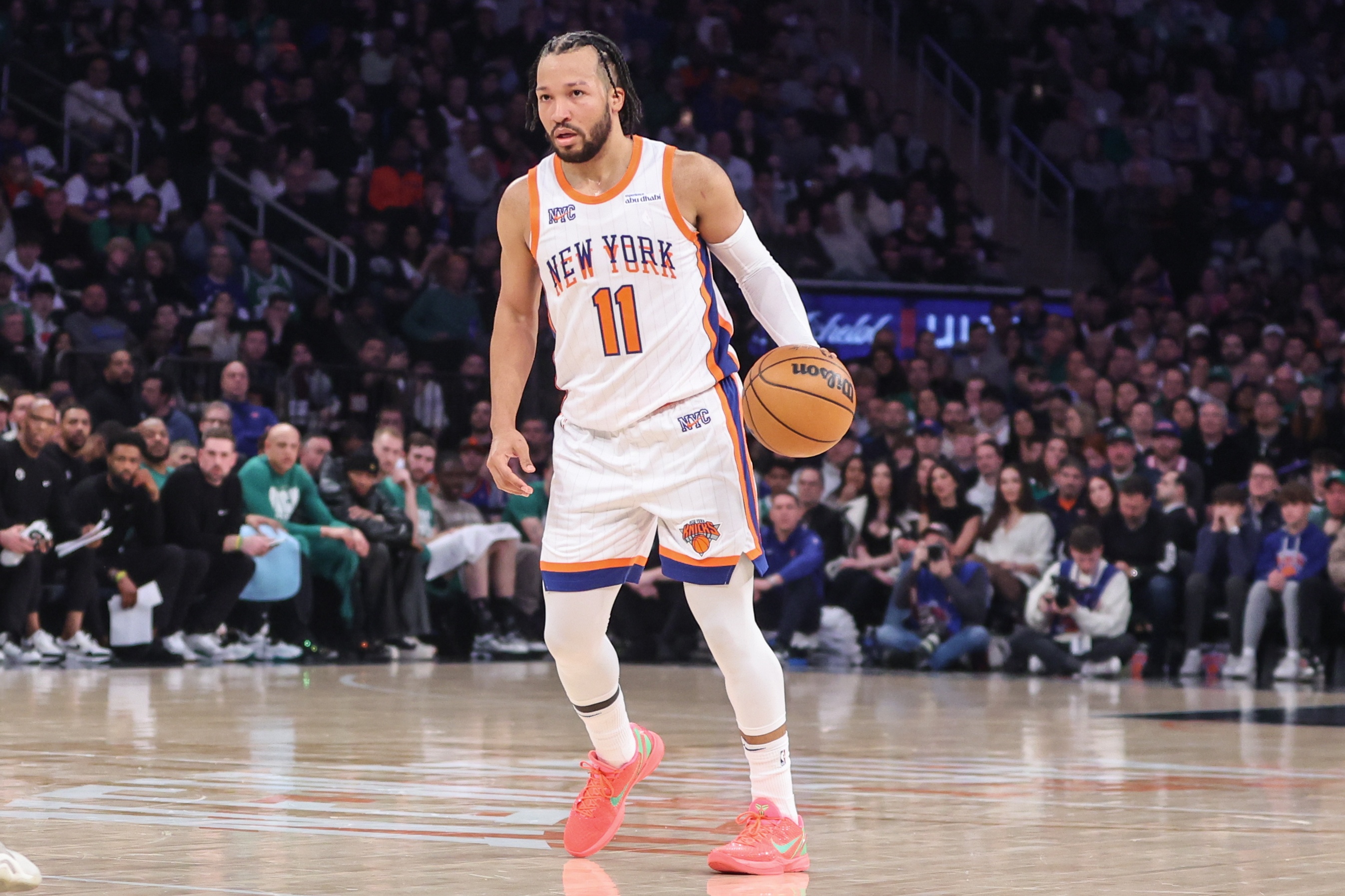 布倫森首節(jié)打滿12分鐘,7投5中,三分2中1,罰球3中3,拿到14分3助攻。首節(jié)即將結(jié)束時(shí),他還命中了一記高難度壓哨跳投。