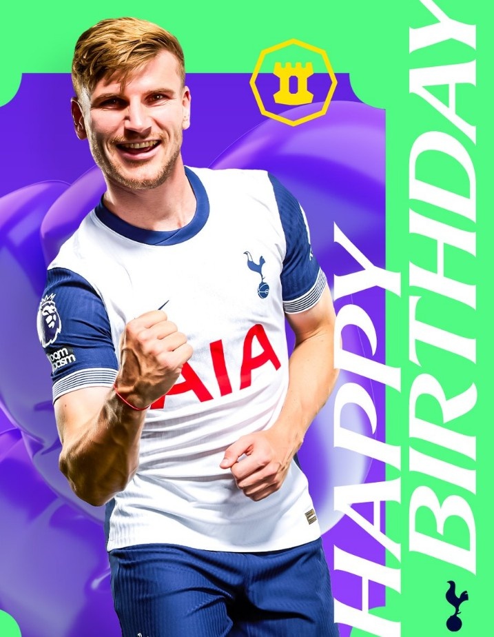 3月6日訊 今天是維爾納29歲生日,熱刺官方也為這位德國(guó)前鋒送上生日祝福。