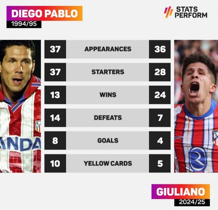迭戈-西蒙尼(94/95賽季)vs朱利亞諾-西蒙尼(24/25賽季)