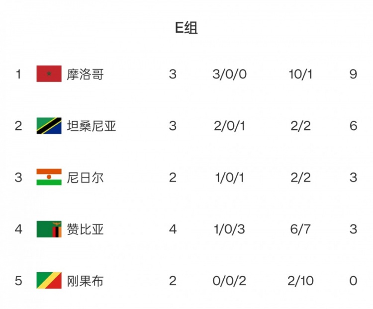 E組:摩洛哥無懸念領(lǐng)跑,因厄立特里亞退出僅剩5隊(duì)