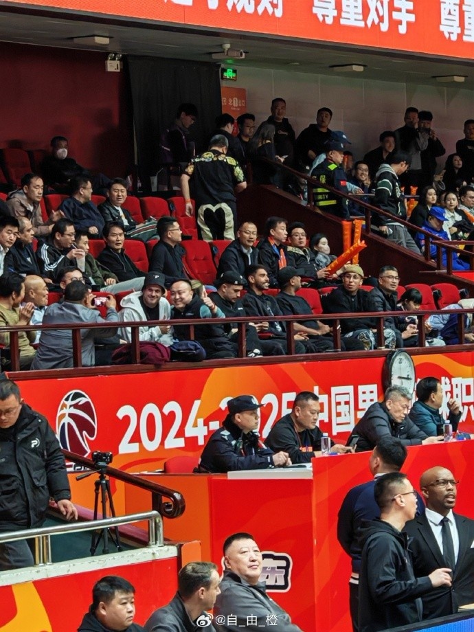 泰山隊博主“自_由_橙”曬出圖片,泰山外援克雷桑、馬德魯加、瓦科、卡扎爾現場觀戰(zhàn)CBA山東高速的主場比賽。