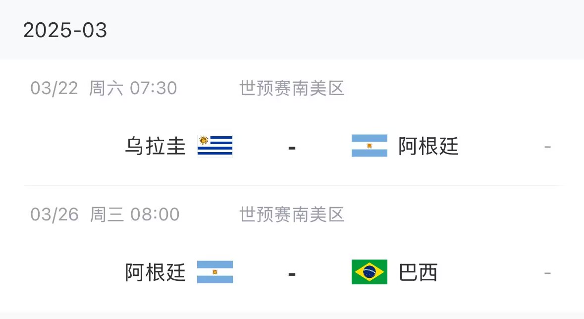 阿根廷本月世預(yù)賽賽程↓