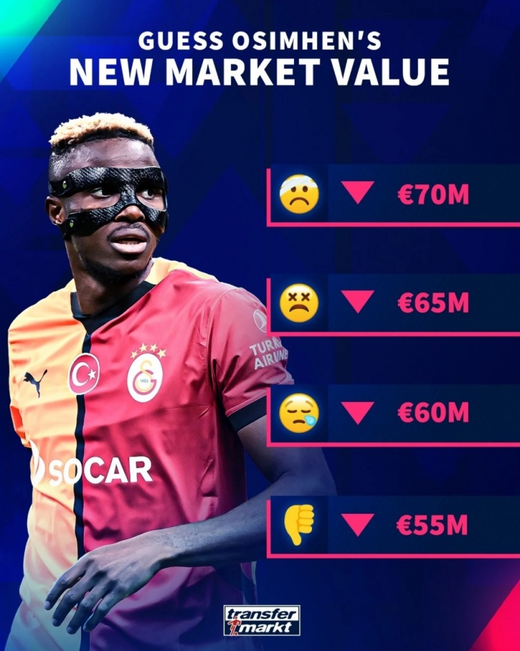 確定下跌!德轉(zhuǎn)預(yù)熱奧斯梅恩身價(jià)變化,最低降至5500萬歐元