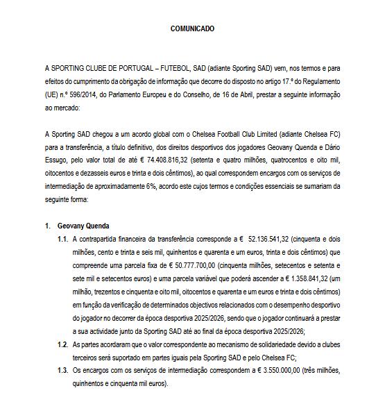 昆達轉(zhuǎn)會費為52136541.32歐元(約5214萬歐),包括固定部分50777700.00歐元(約5078萬歐萬歐)和可變部分1358841.32歐元(約136萬歐),可變部分將根據(jù)球員在2025/2026賽季的體育表現(xiàn)達成情況支付。球員將繼續(xù)為葡體效力至2025/2026賽季結(jié)束。