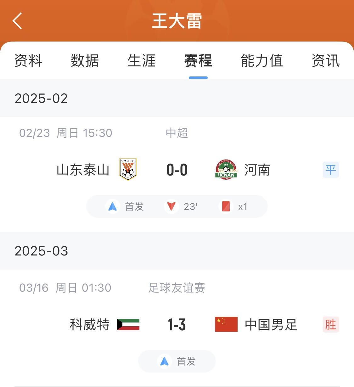 但2025賽季中超首輪泰山vs河南,王大雷出擊踢倒對手染紅,2月23日之后未參加正式比賽。而顏駿凌出戰(zhàn)了中超+亞冠的所有比賽。