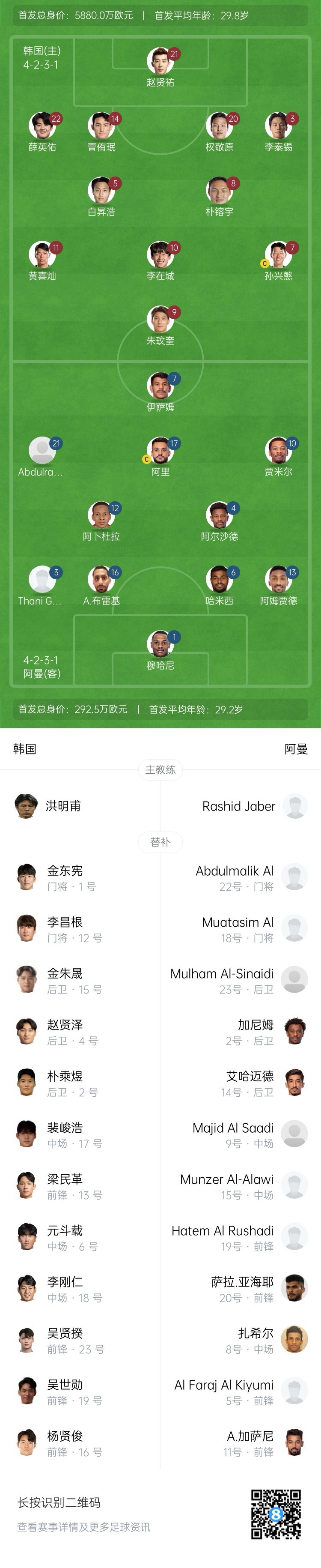 世預(yù)賽-韓國(guó)vs阿曼首發(fā):孫興慜領(lǐng)銜黃喜燦出戰(zhàn),李剛?cè)侍嫜a(bǔ)