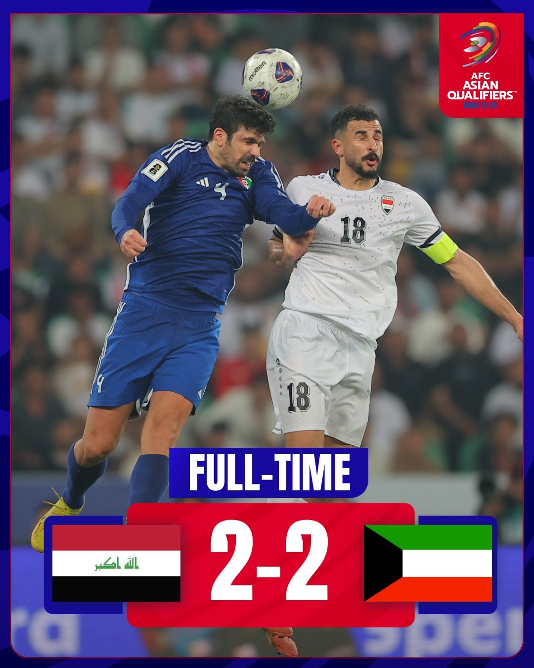 101分鐘絕平!世預賽伊拉克補時階段連進兩球,2-2戰(zhàn)平科威特