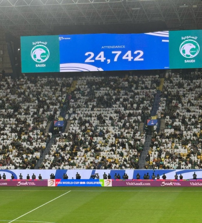 國足0-1客負(fù)沙特,本場比賽現(xiàn)場觀眾人數(shù)為24742人