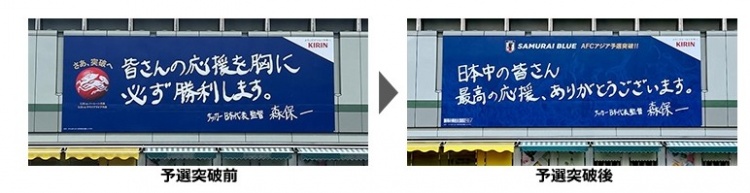 據(jù)日本足協(xié)報道,在日均人流量達(dá)300萬的日本新宿地鐵站南面出口的一處看板上,在世預(yù)賽前后都換上了森保一親筆寫下的感謝語。據(jù)悉,自3月16日到鎖定世界杯參賽資格前,看板內(nèi)容為:“我們會將大家的聲援銘記在心,與巴林一戰(zhàn)我們一定會取勝?!?/p>