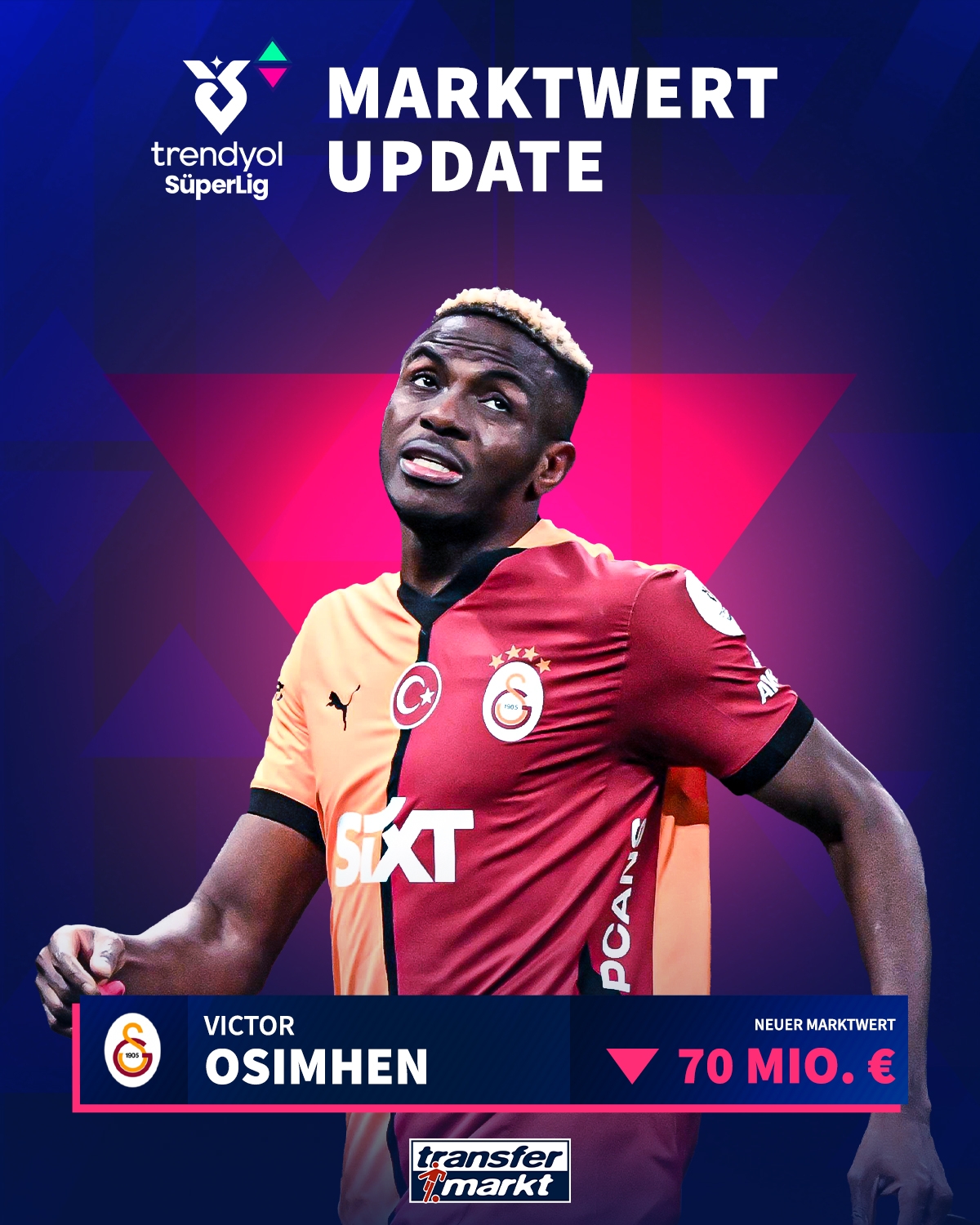 自夏窗從那不勒斯租借加盟加拉塔薩雷以來(lái),奧斯梅恩的身價(jià)已經(jīng)從1億歐,不斷下跌來(lái)到7000萬(wàn)歐。